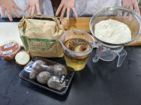 2024年10月31日 17時02分10月31日(木)食品デザイン科実験班がサルチャのアンケートをもとに、メニュー開発を行いました。まず、生産科学科が栽培した「にこまる」と大洲の特産干しシイタケ、里芋を使ったサルチャピラフ。次に、サルチャとヨーグルトを合わせたディップソースにグリルした肉や魚をつけてみました。デザートはリンゴとサルチャのヨーグルトサラダです。どれもおいしくてどんどんアイデアが湧いてきました☆